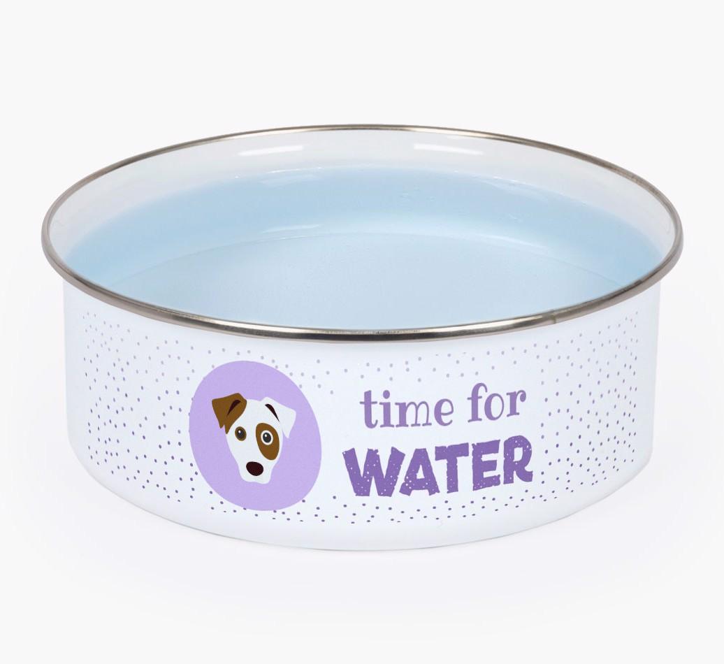 Time For Water: Personalized Enamel Jack Russell Terrier Bowl