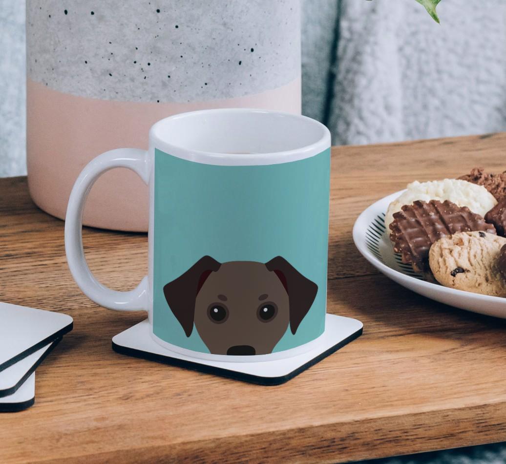 Enjoy the perfect coffee break with a mug that stars your furry friend! Featuring a Yappy.com exclusive Jackshund peeking icon, this pawgeous mug will look at home in any dog lover's kitchen and we're pretty sure Jackshund will be a fan too.
