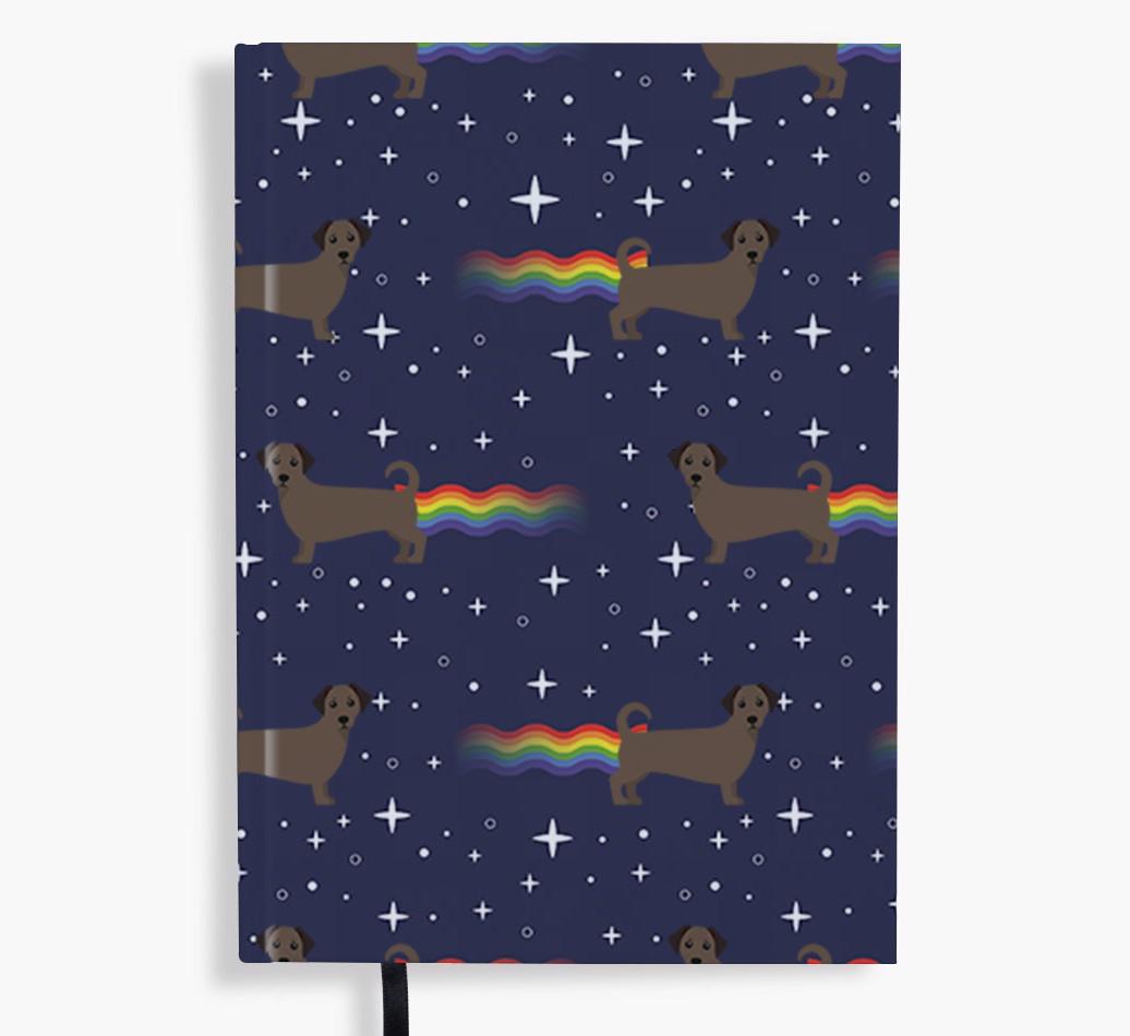 Featuring your cheeky Jackshund, lots of twinkling stars and available in a range of bold colors, this fun notebook is truly out of this world.