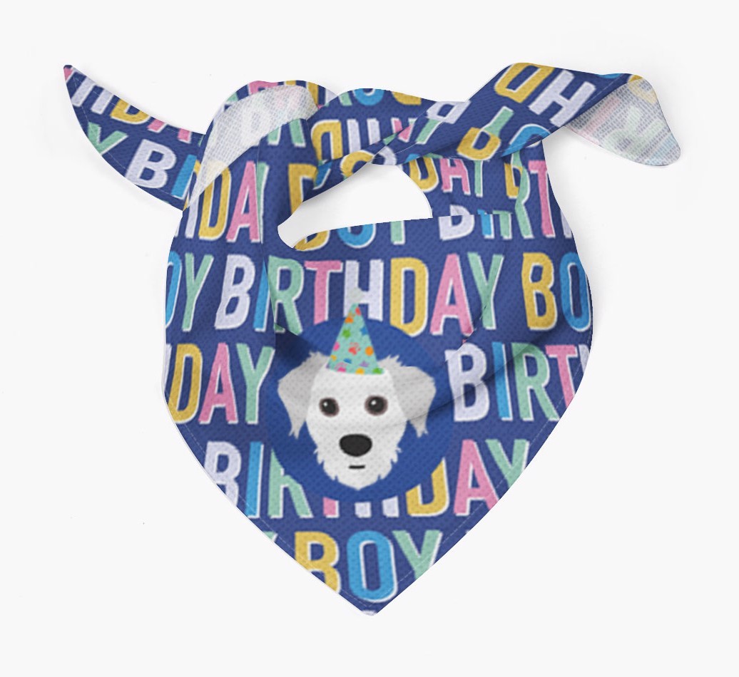 Featuring a colorful text pattern that reads 'birthay boy' and personalized with Jacktzu's cute icon (complete with a fun party hat), your Jacktzu will look simply pawgeous on their special day when they're wearing this bandana.