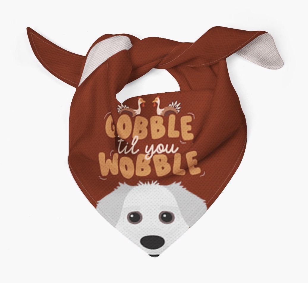 This cute custom bandana is printed with the phrase of the season, "gobble til you wobble"!