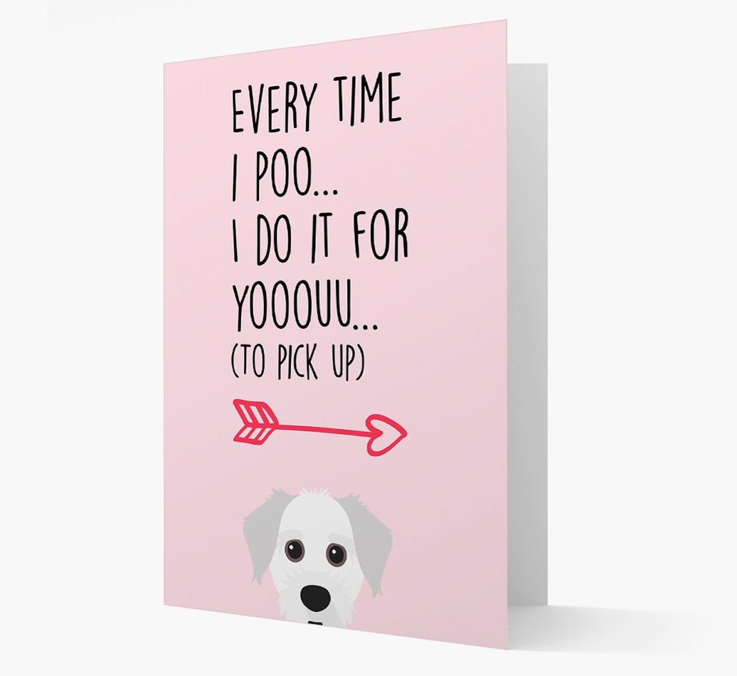 Printed with the words ‘Everytime I poo… I do it for youuuuu (to pick up)’, this lyrical card is personalized with our famous Jacktzu icon – so it’s clear who’s been leaving you all those delightful ‘gifts’ to pick up!