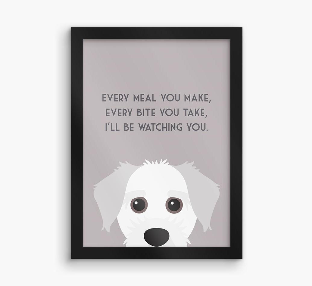 Printed with the words, ‘Every meal you make, every bite you take, I’ll be watching you’ and complete with our cute Jacktzu peeking from the bottom of the design, this artwork will look great on display in the kitchen or anywhere Jacktzu likes to watch you eat!