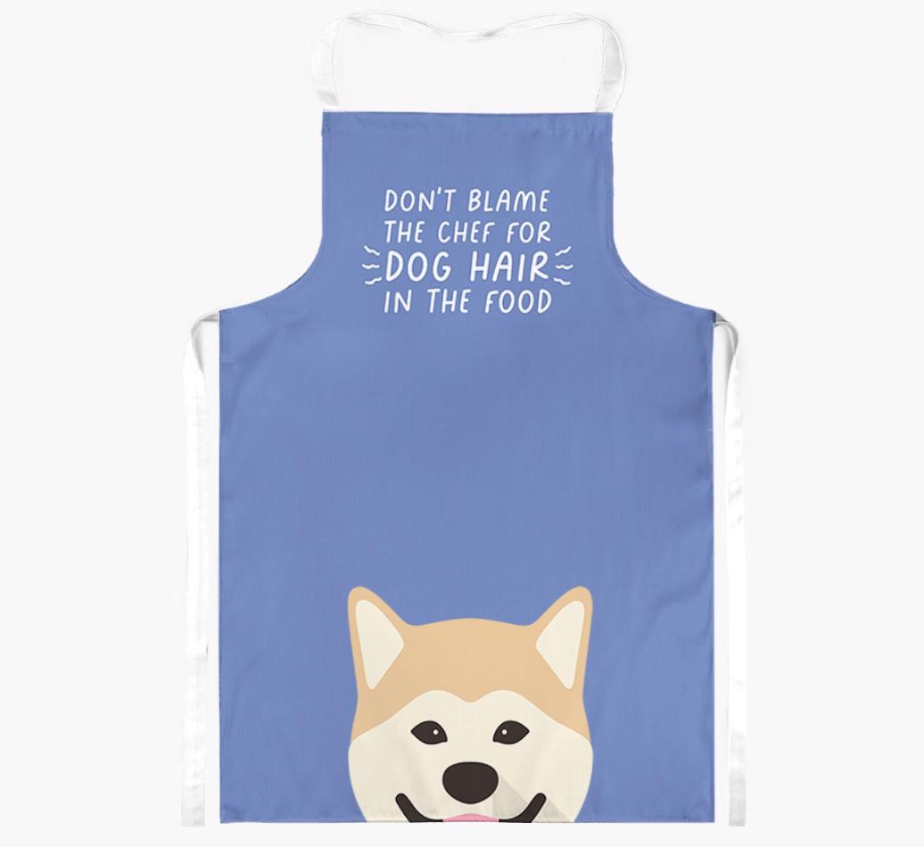 This funny apron will warn friends and family not to blame the chef for dog hairs in their food, they have Japanese Akita to thank for that!