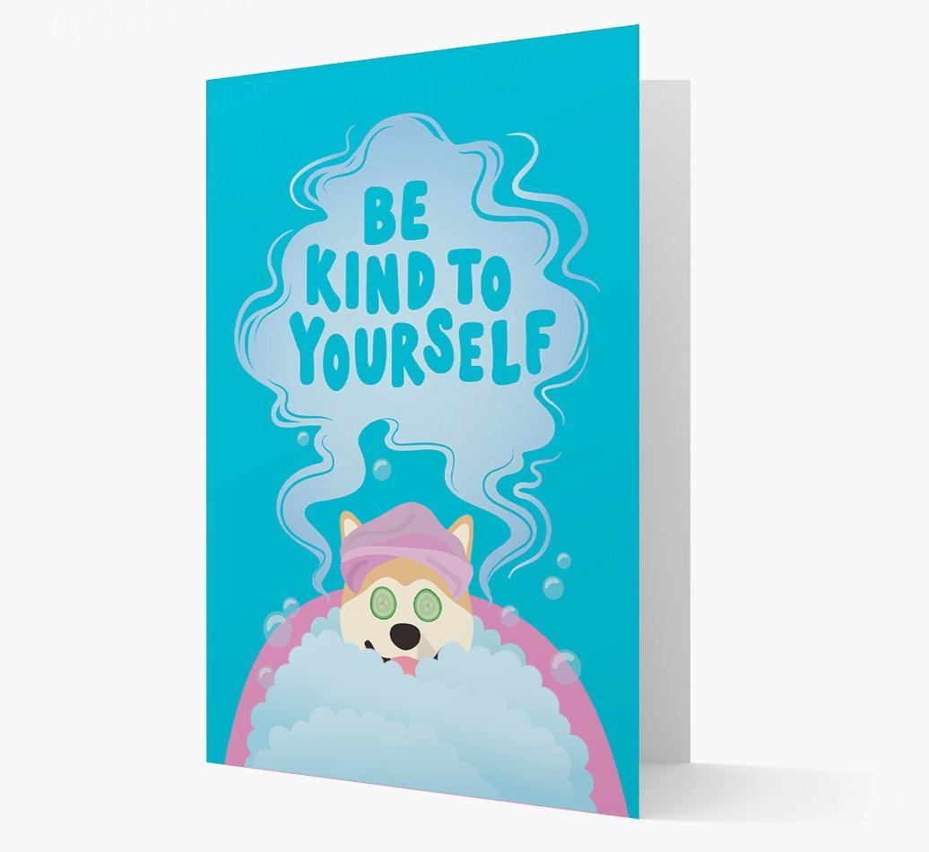 With this furbulous Akita Inu design, featuring Japanese Akita relaxing in a bath with the words ‘Be Kind To Yourself’, this card is the ulti-mutt way to let someone you love know that they need to chill!