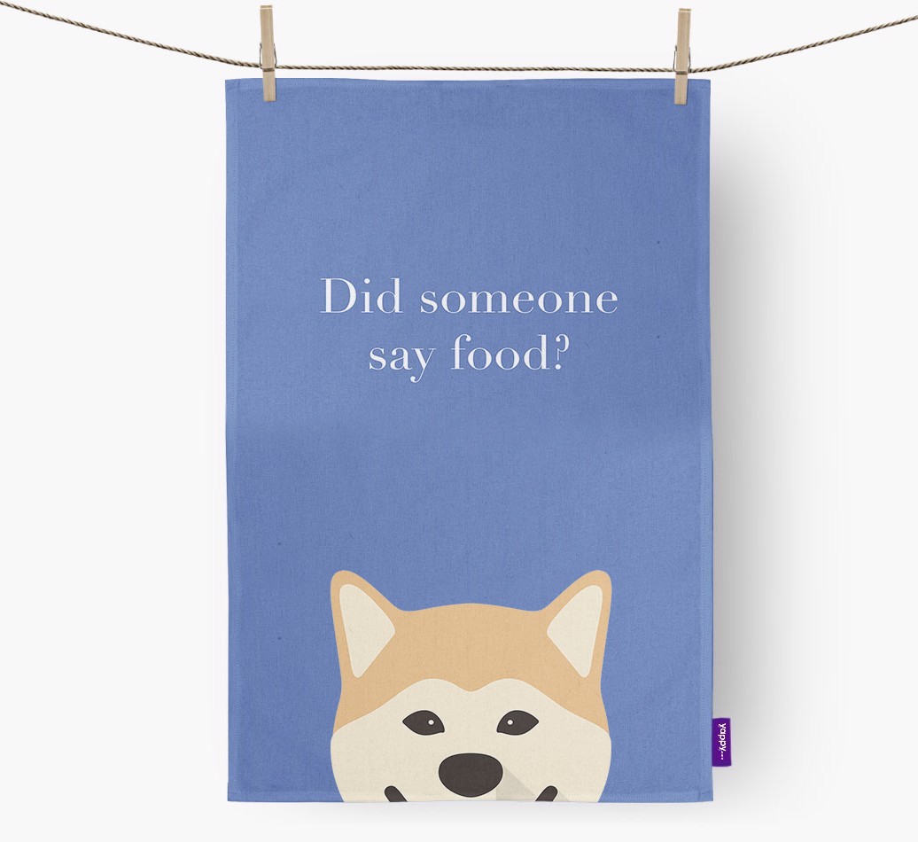 Printed with the question, ‘Did someone say food?’, this dish towel knows exactly what’s on Your Akita Inu’s mind.