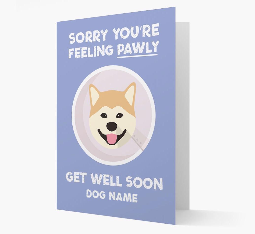 'Sorry You're Feeling Pawly' - Personalized Japanese Akita Get Well Soon Card