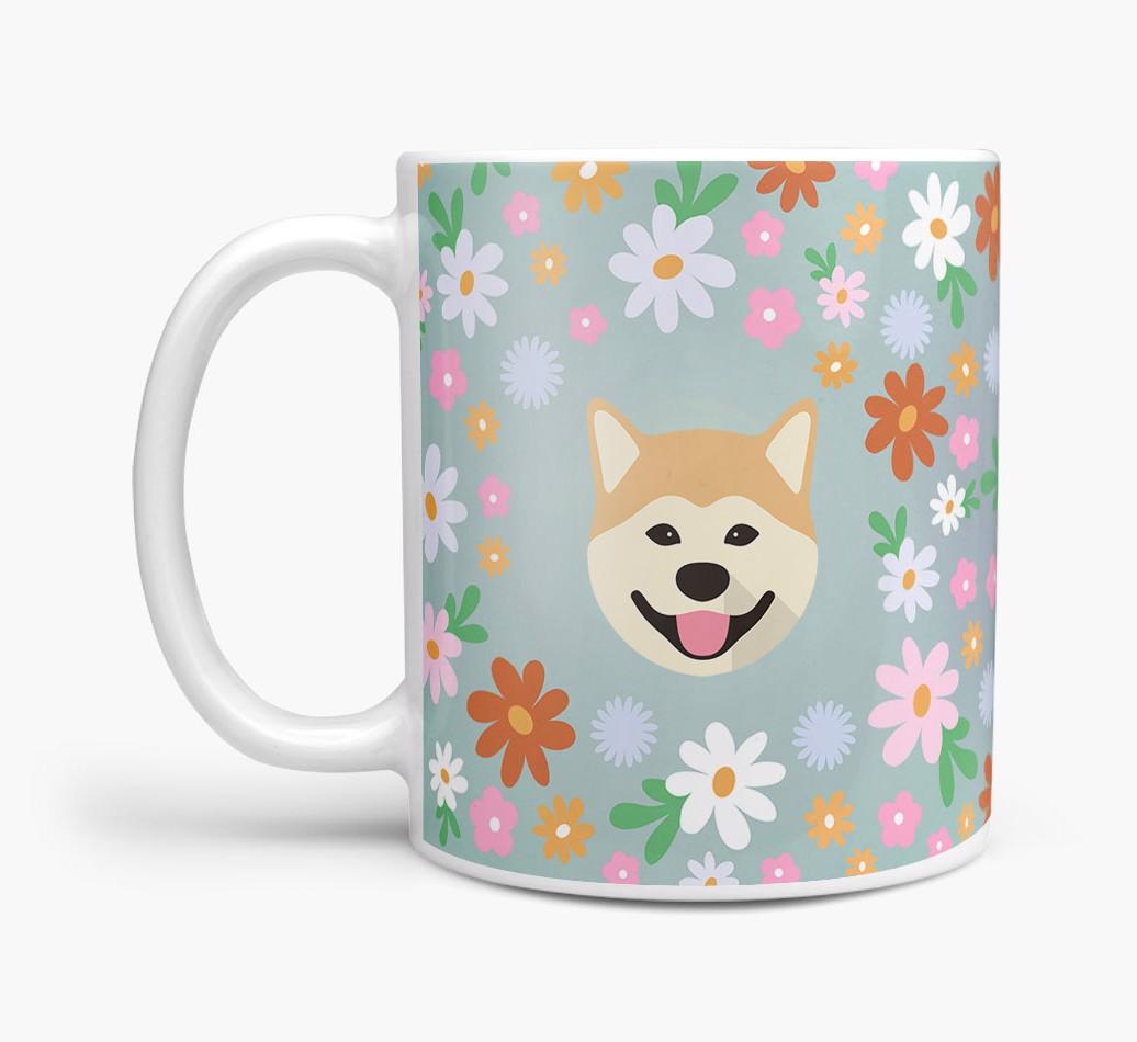Featuring a colorful bunch of flowers, this mug is printed with the words 'woofly grandma' on one side of the mug and your Akita Inu's cute icon on the other. Bloomin' lovely!