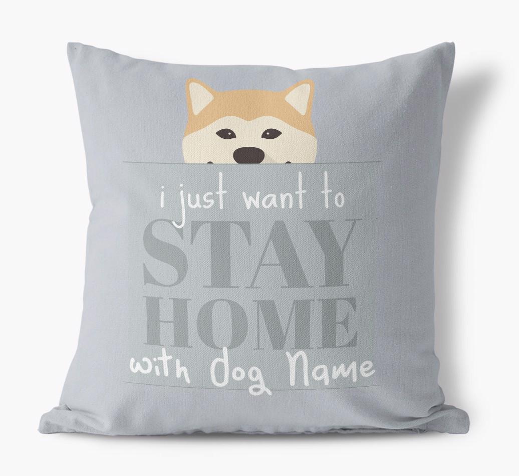 Stay Home: Personalized Japanese Akita Canvas Pillow