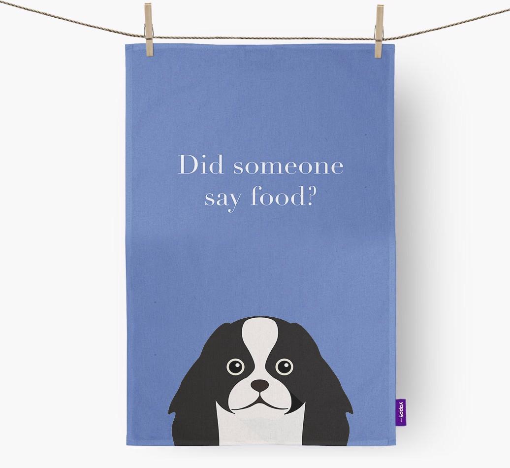 Printed with the question, ‘Did someone say food?’, this dish towel knows exactly what’s on Your Japanese Chin’s mind.