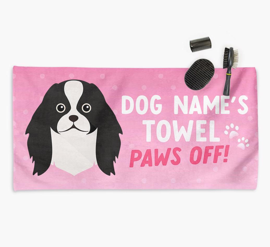 Perfect for messy pups and for pampering your Chin at bathtime, this soft and absorbent towel is made for cleaning your mucky pup and drying them off in a flash. It's personalized with Japanese Chin's name and icon and is printed with a message for everyone else to keep their paws off it!