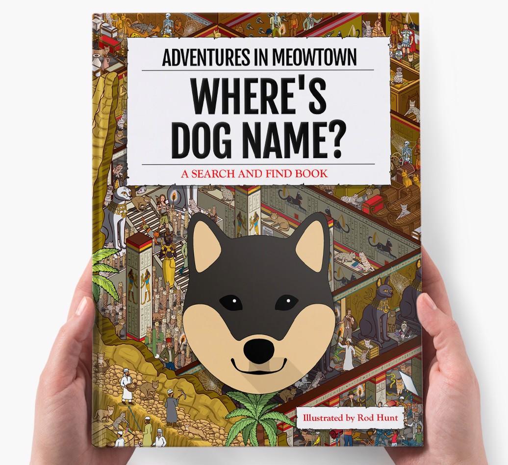 Get ready to unleash your inner detective with our popular Search & Find book, ‘Where’s (insert dog name)?’ It’s the personalized dog book everyone’s yapping about! With twelve beautifully illustrated locations to explore, we challenge you to find your adventurous {breedShortName} on each action-packed page. Can you spot all the canine cameos and funny parodies too?