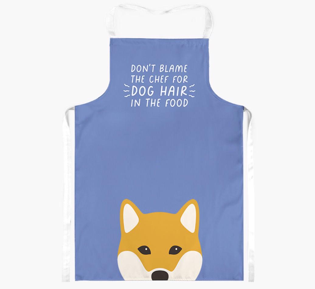 This funny apron will warn friends and family not to blame the chef for dog hairs in their food, they have Japanese Shiba to thank for that!