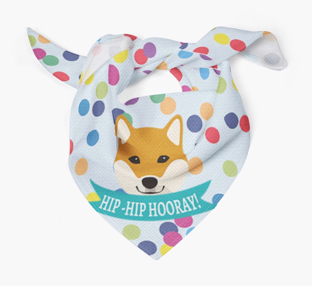 Featuring our famous Shiba Inu icon and the words ‘hip-hip hooray!’ printed upon a colorful confetti background, Your Shiba Inu is sure to look pawty ready wearing this bandana.