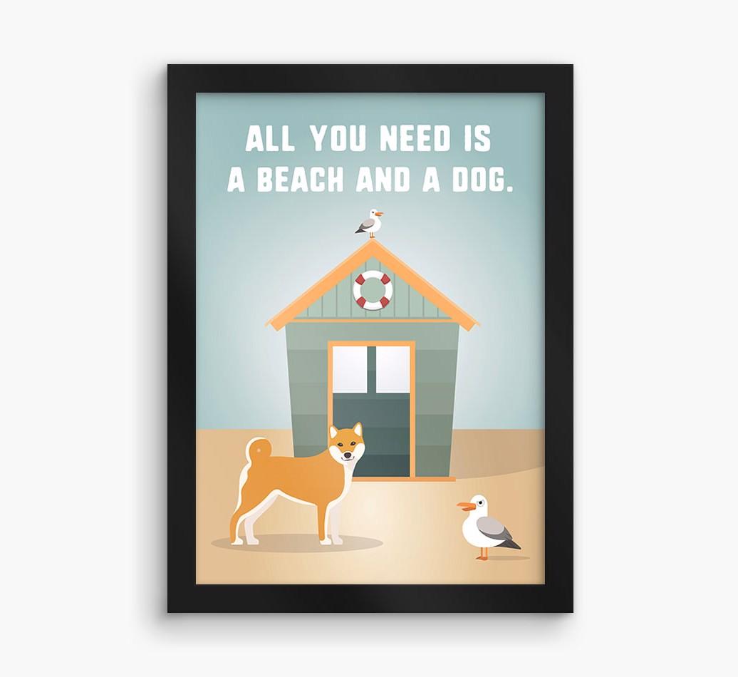 'Beach and a Dog' - Personalized Japanese Shiba Framed Print