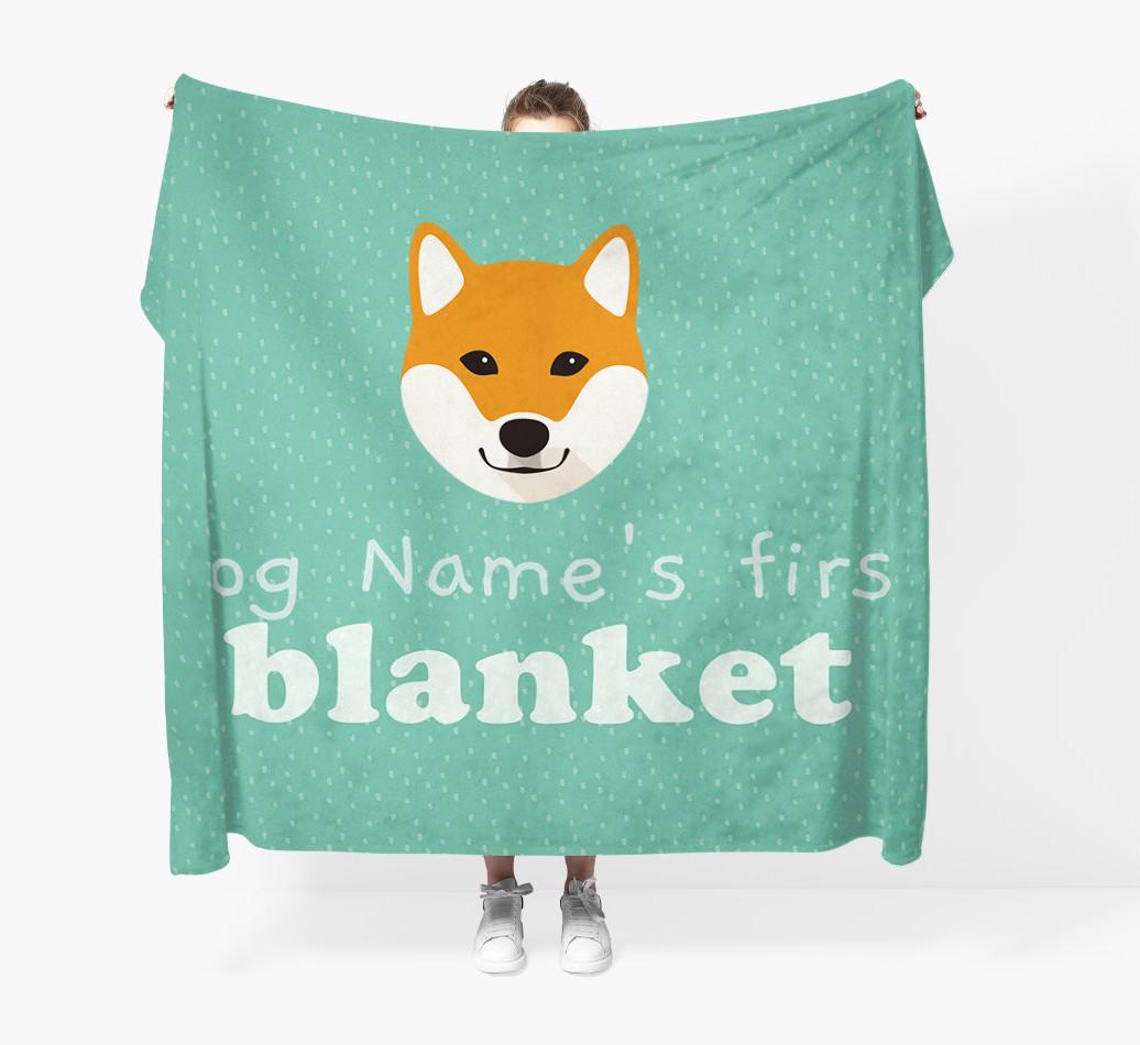 'Dog's First Blanket' - Personalized Japanese Shiba Throw Blanket