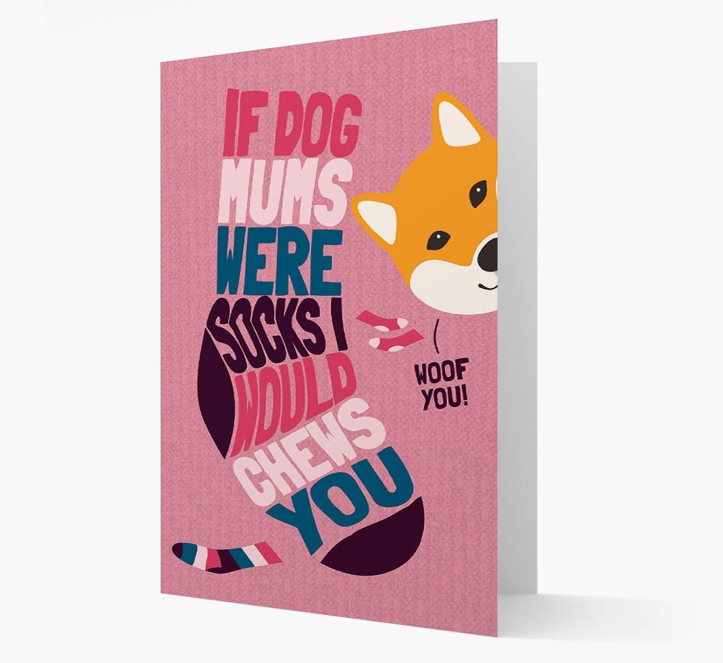 This comical card is pawfect for the Dog Mom who's pawrent to a sock-loving Shiba Inu.