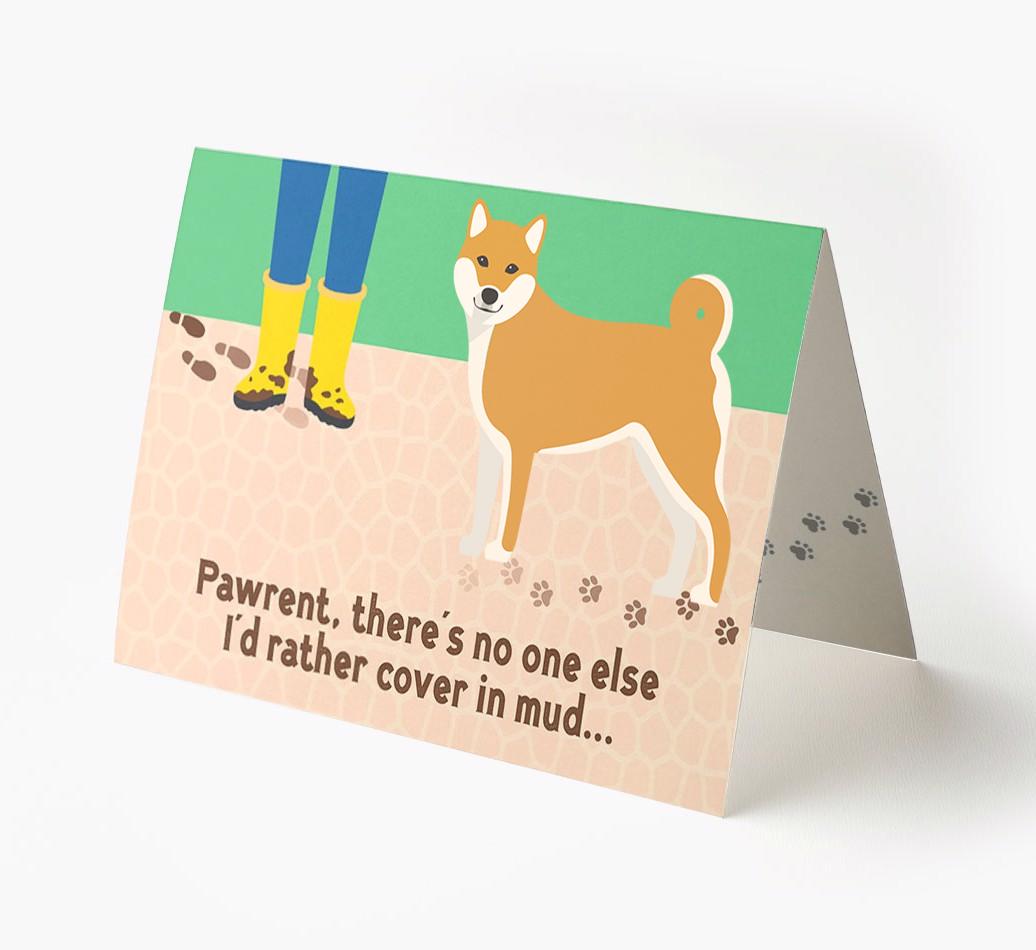 This comical card is sure to delight Japanese Shiba's pawrent (without getting muddy), especially as it stars their Shiba Inu's cheeky icon.