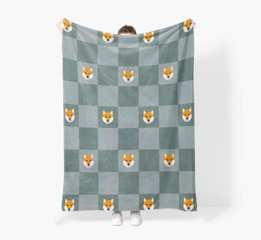 'Checkboard' - Personalized Japanese Shiba Blanket: Premium Sherpa Fleece