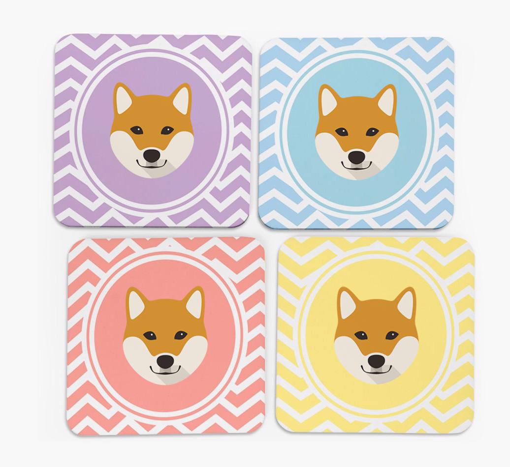 'Zig Zag' - Personalized Japanese Shiba Coasters (Set of 4)