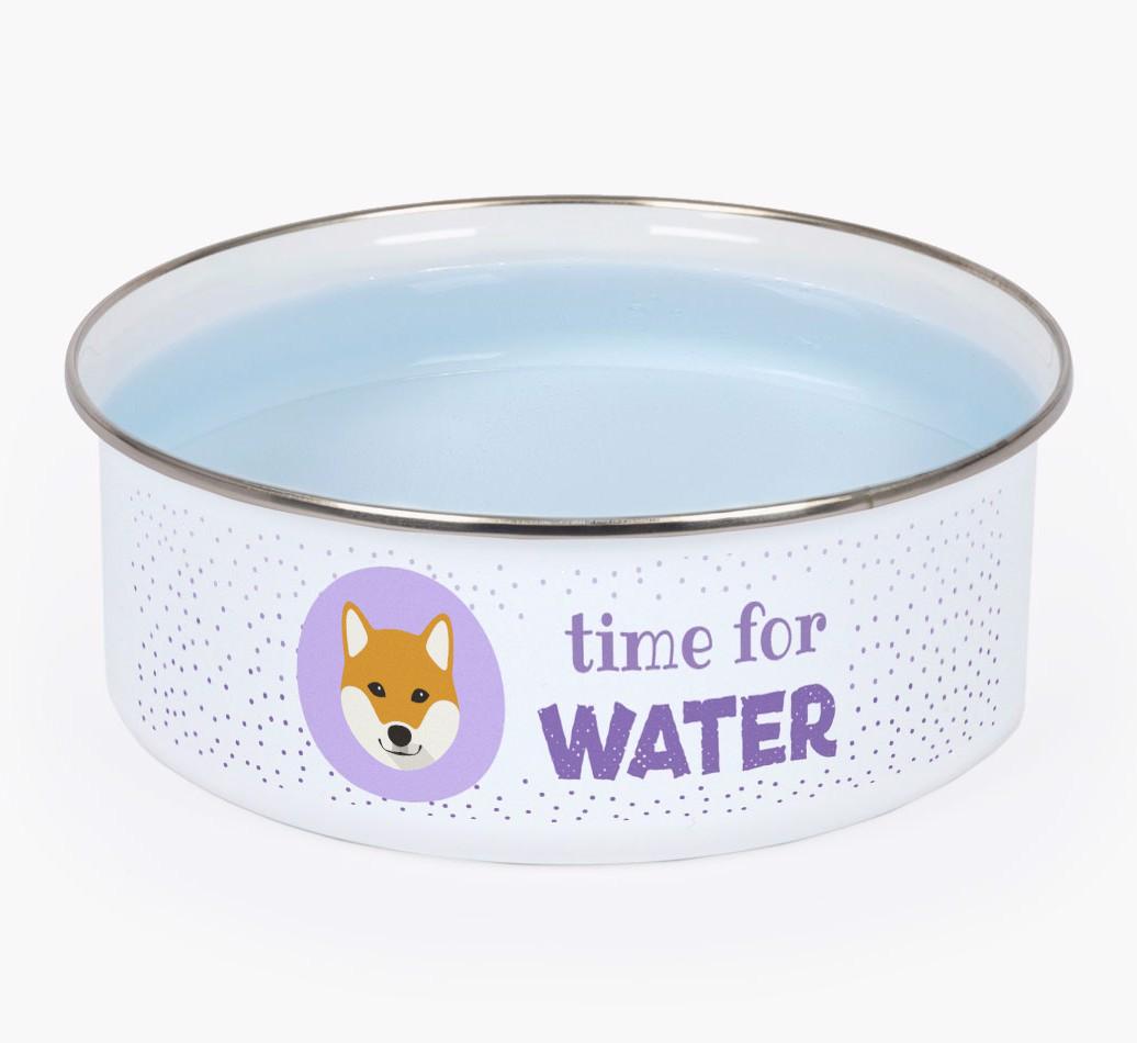 Time For Water: Personalized Enamel Japanese Shiba Bowl