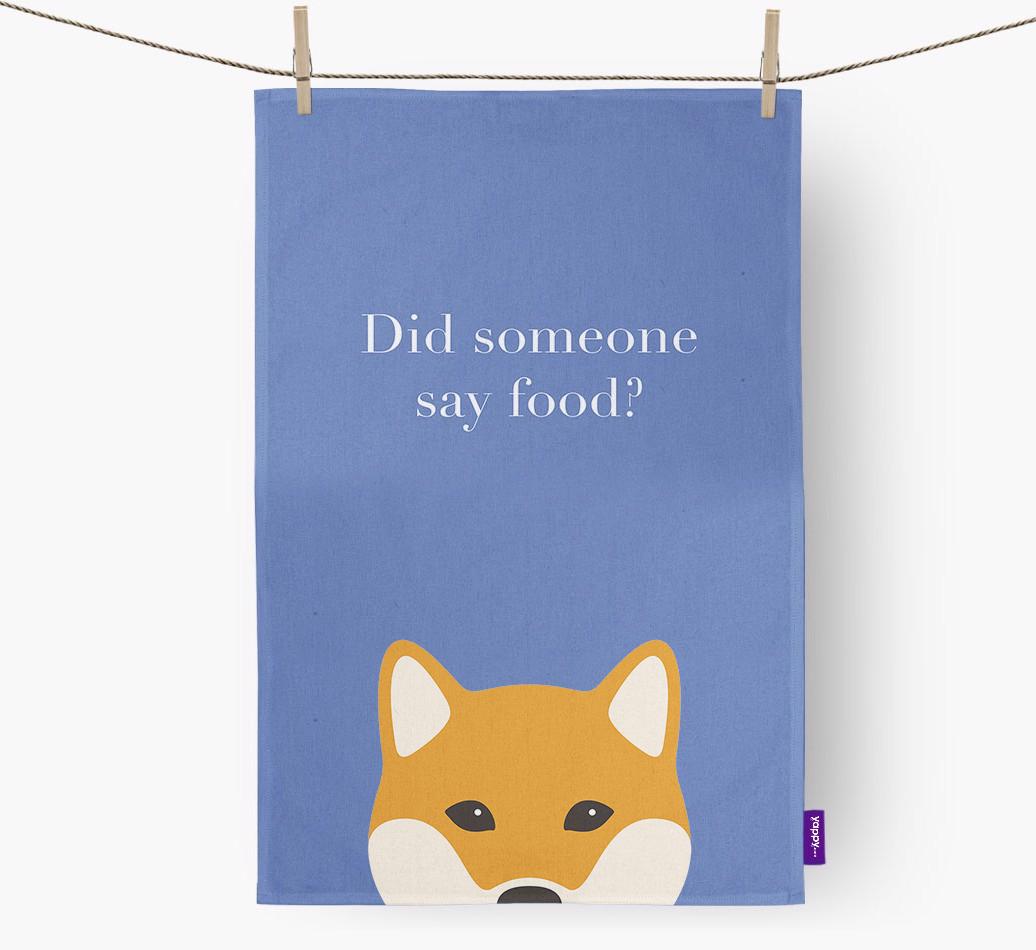 Printed with the question, ‘Did someone say food?’, this dish towel knows exactly what’s on Your Shiba Inu’s mind.