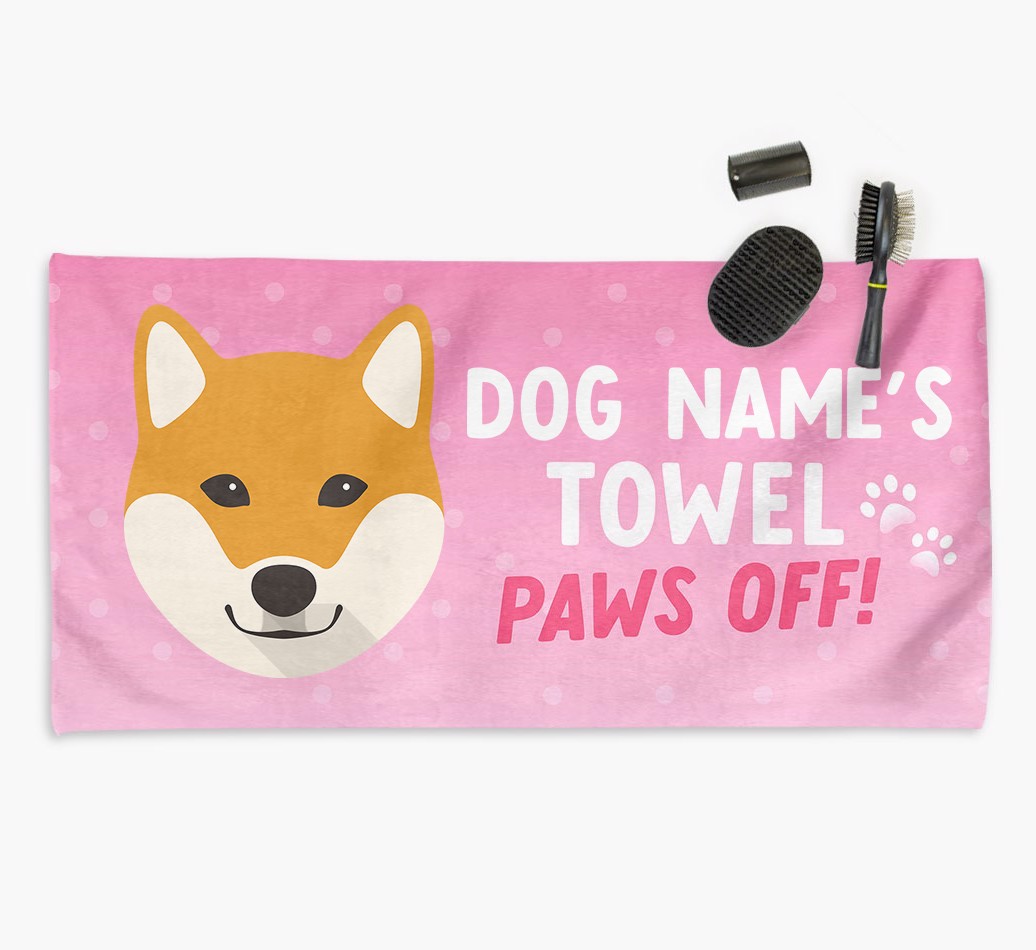 Perfect for messy pups and for pampering your Shiba Inu at bathtime, this soft and absorbent towel is made for cleaning your mucky pup and drying them off in a flash. It's personalized with Japanese Shiba's name and icon and is printed with a message for everyone else to keep their paws off it!
