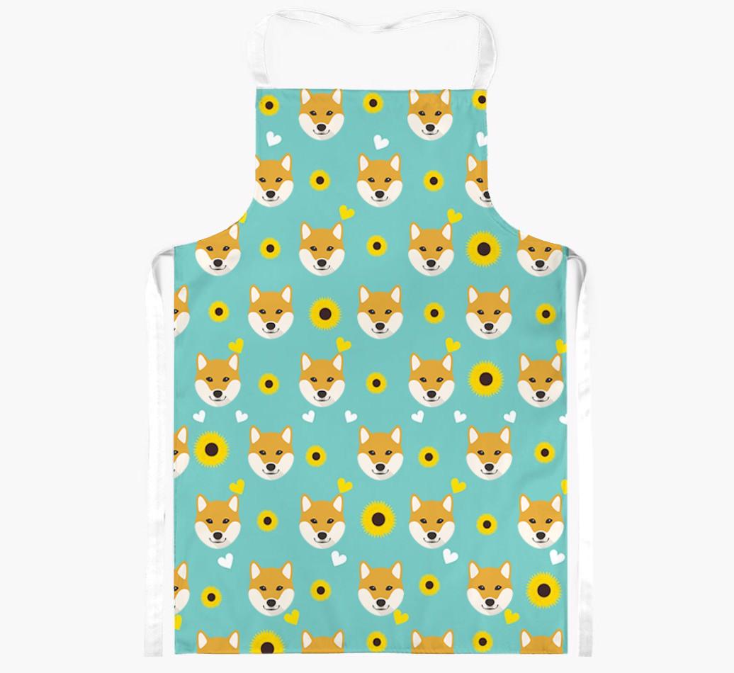 This apron has a delightful sunflower and heart pattern, and best of all - it's personalized with Japanese Shiba's face too! This cute and colorful apron is sure to put a smile on every dog lover's face.