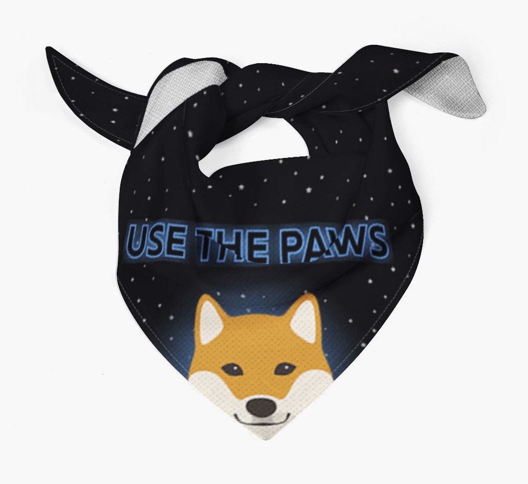 Featuring a starry night sky and glowing text, this bandana is made extra special with the addition of your Shiba Inu's cute icon.