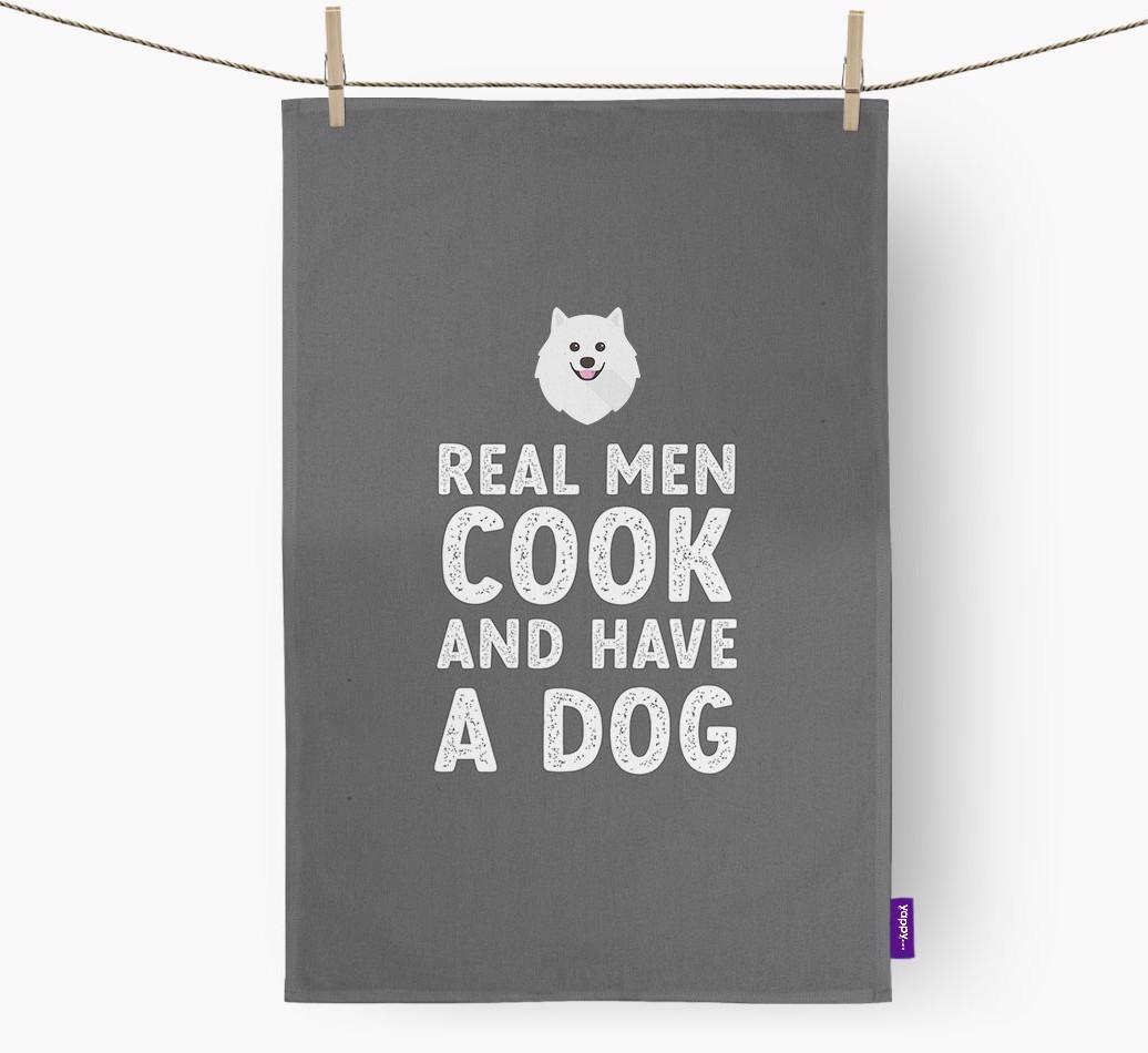 Real Men Cook And Have A Dog: Personalized Japanese Spitz Dish Towel