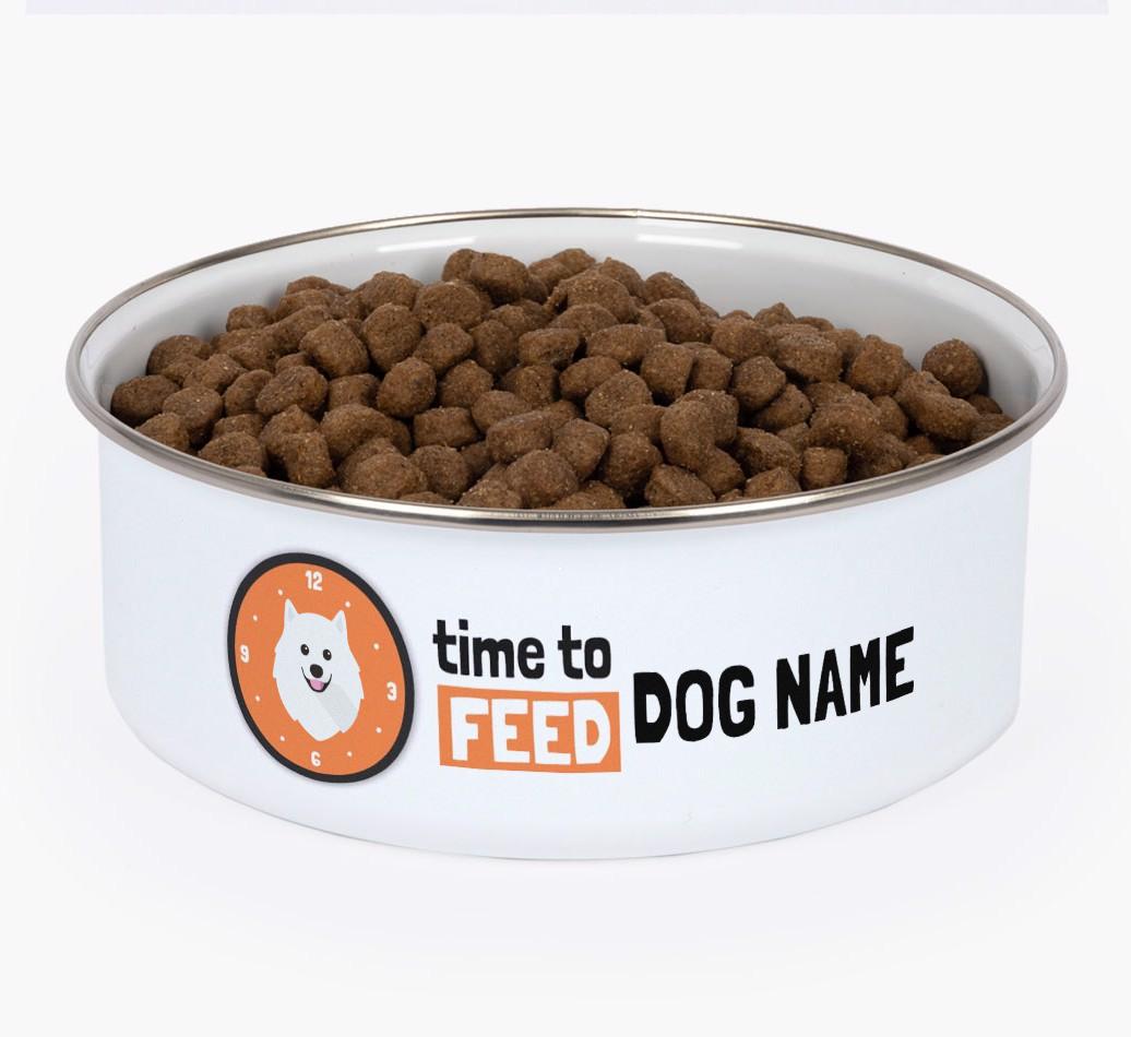 Time To Feed: Personalized Enamel Japanese Spitz Bowl
