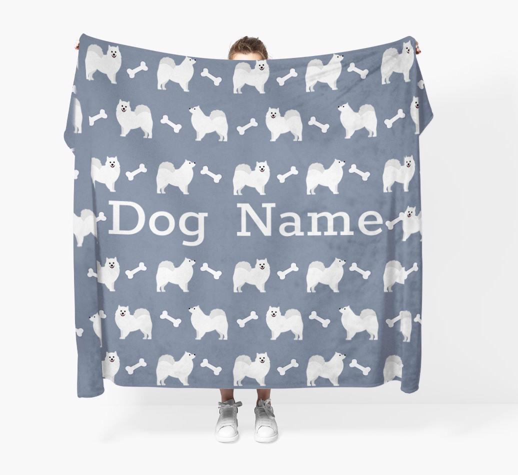 'Bones and Dogs' - Personalized Japanese Spitz Throw Blanket