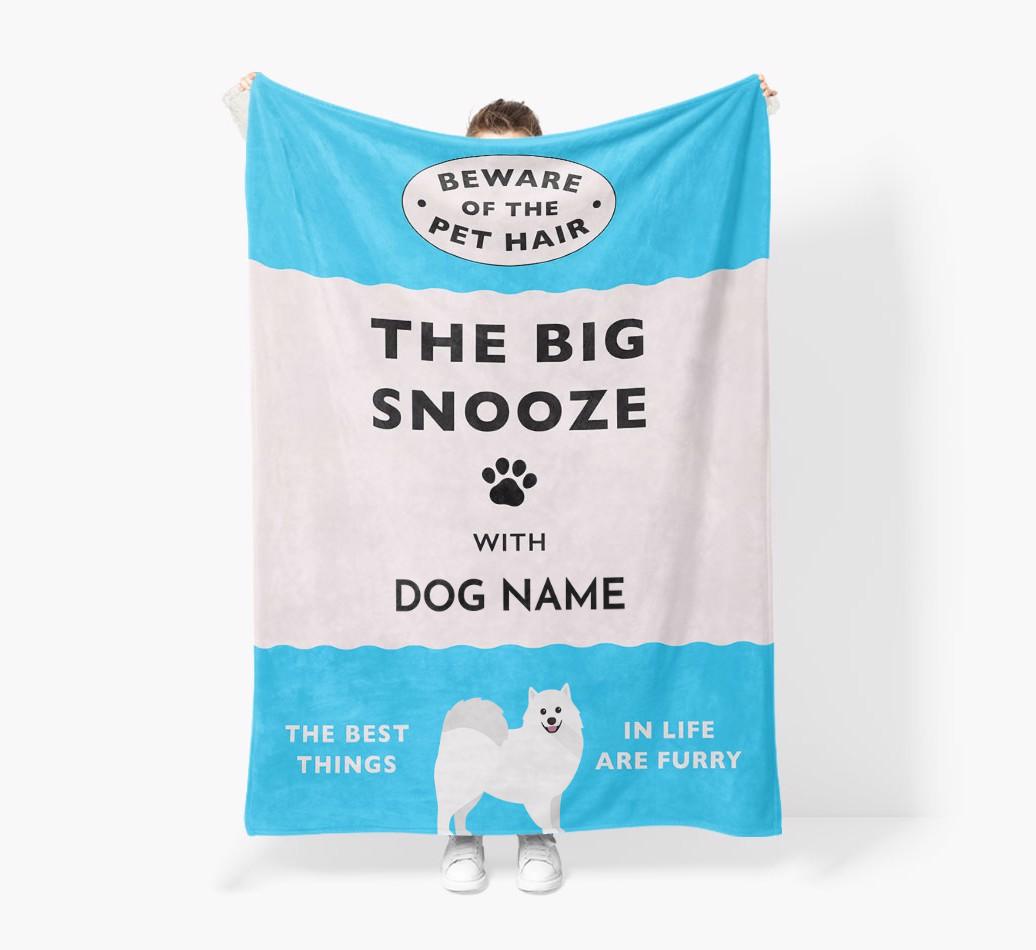 'Big Snooze' - Personalized Japanese Spitz Blanket: Premium Sherpa Fleece