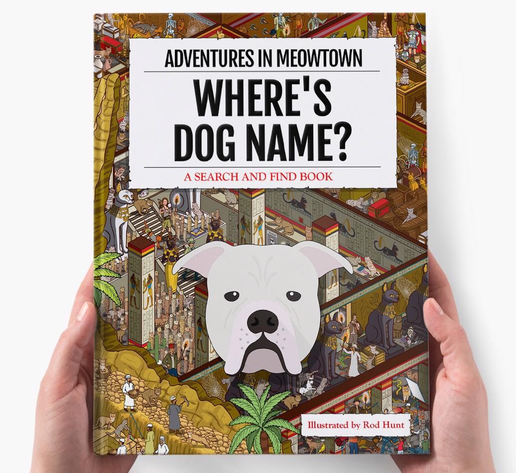 Get ready to unleash your inner detective with our popular Search & Find book, ‘Where’s (insert dog name)?’ It’s the personalized dog book everyone’s yapping about! With twelve beautifully illustrated locations to explore, we challenge you to find your adventurous {breedShortName} on each action-packed page. Can you spot all the canine cameos and funny parodies too?