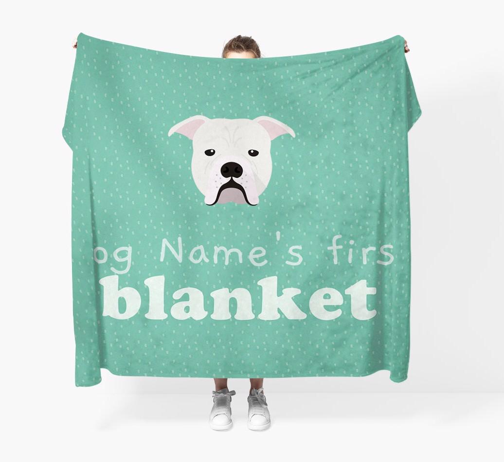 'Dog's First Blanket' - Personalized Johnson American Bulldog Throw Blanket