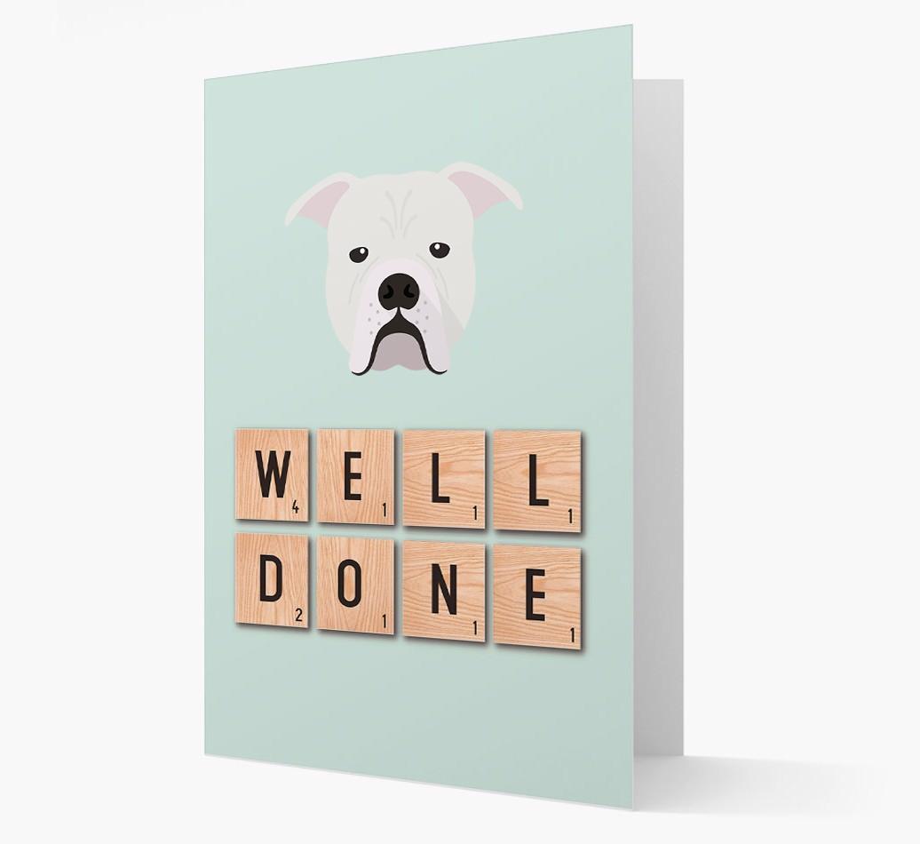 Featuring our furbulous icon of Your Johnson American Bulldog and a scrabble design, this card comes in four furbulous colors and is 5 x 7" in size.