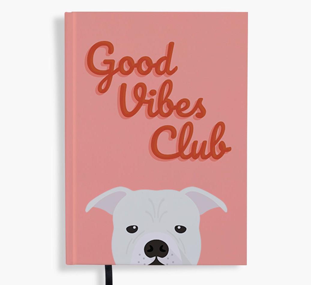 Are you and Johnson American Bulldog all about the good vibes? Customized with your pup’s cheeky icon, this sleek and stylish notebook is the pawfect way to show off the lead member of the Good Vibes Club. Plus, as it's available in a range of eye-catching colorways, it'll encourage pawsitivity and good vibes each time you put pen to paper.