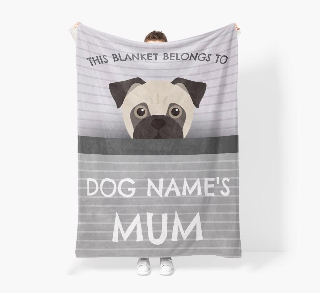 This luxuriously soft sherpa fleece blanket is a must-have for Jug’s mom, because what could be more comforting than cuddling up to a cozy blanket that’ll fur-ever remind her of her Jug?