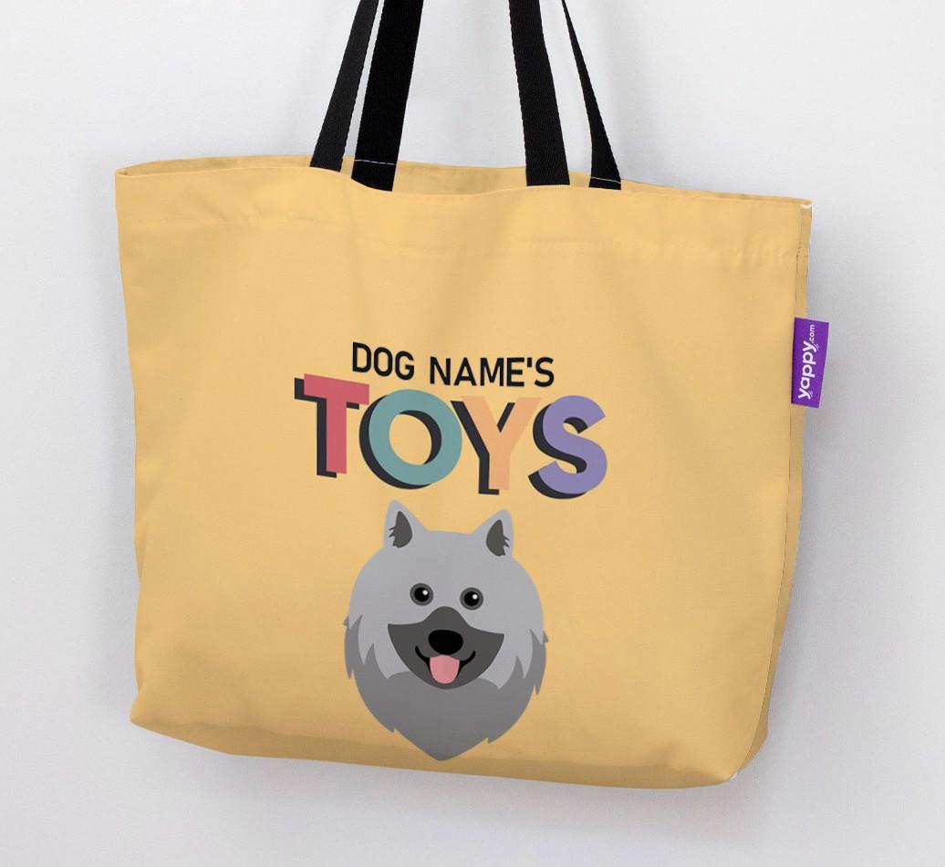 Don’t worry, we’ve got you covered with this pawsonalized canvas bag made for your Keeshond’s toy collection!