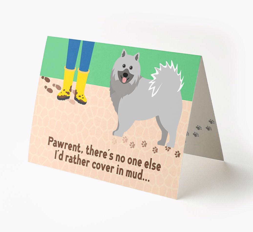 This comical card is sure to delight Keeshond's pawrent (without getting muddy), especially as it stars their Keeshond's cheeky icon.