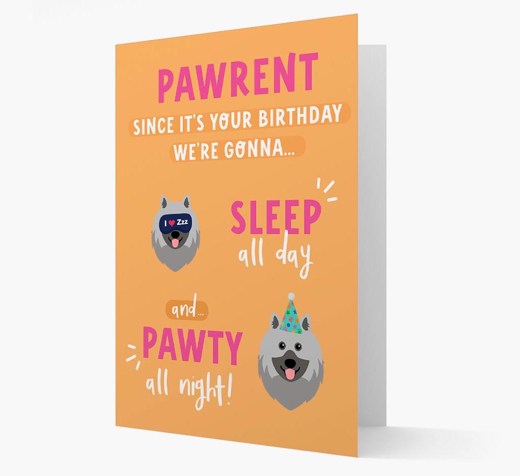 If Keeshond woofs to pawty all day and sleep all night, this card encourages their pawrent to do it with them on their birthday!