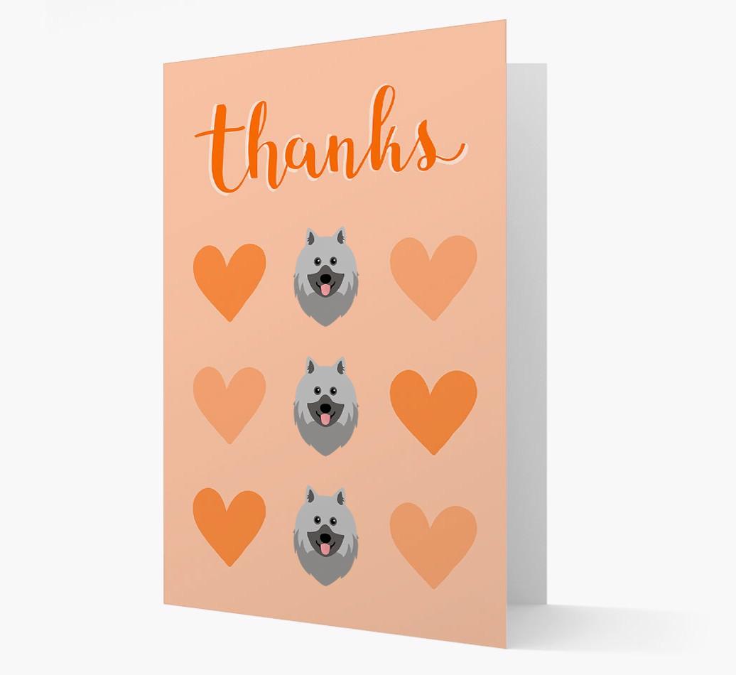 'Thanks' - Personalized Keeshond Card with Heart Pattern