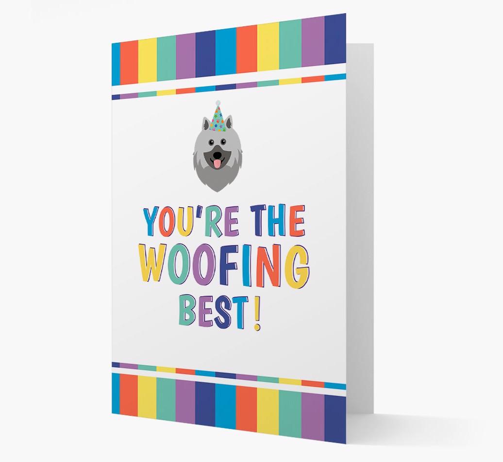 Featuring your chosen Keeshond icon donning a pawty hat, this card is sure to go down a woofing storm!