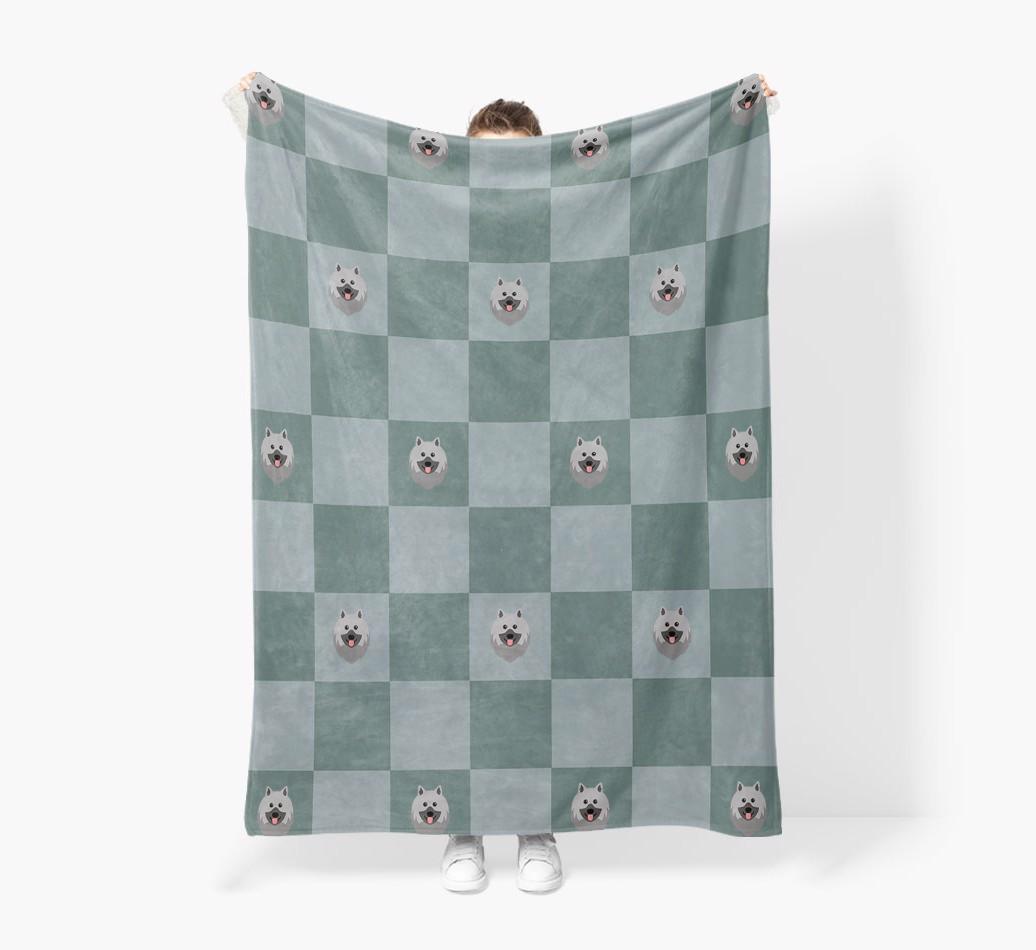 'Checkboard' - Personalized Keeshond Blanket: Premium Sherpa Fleece
