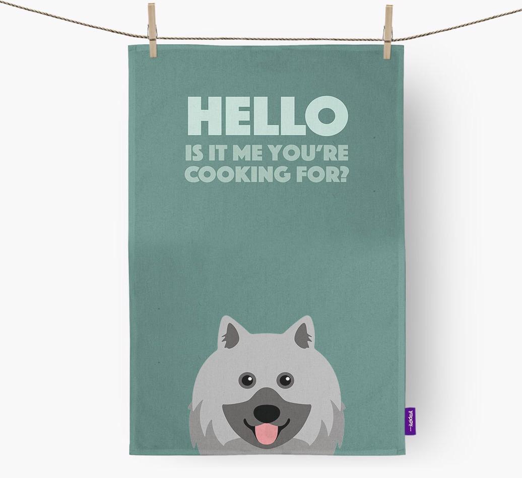 This gorgeous dish towel is sure to delight every Keeshond pawrent, especially as it stars their pup asking their favorite question, 'is it me you're cooking for?'