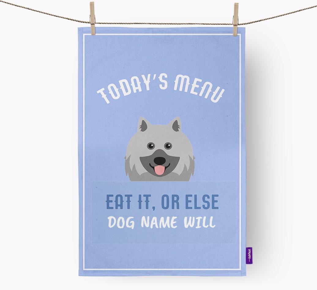 'Eat It, Or Else...' - Personalized Keeshond Dish Towel