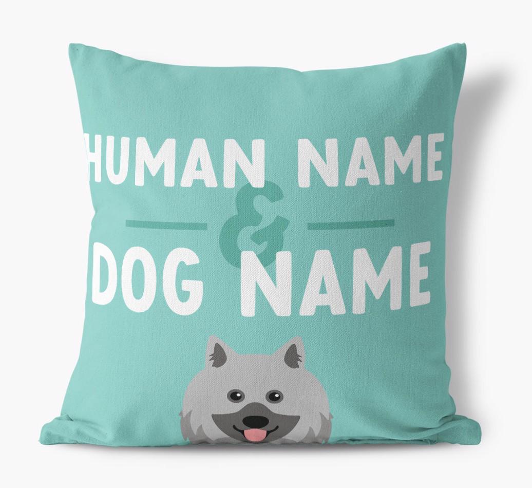 Human And Pet Name: Personalized Keeshond Canvas Pillow