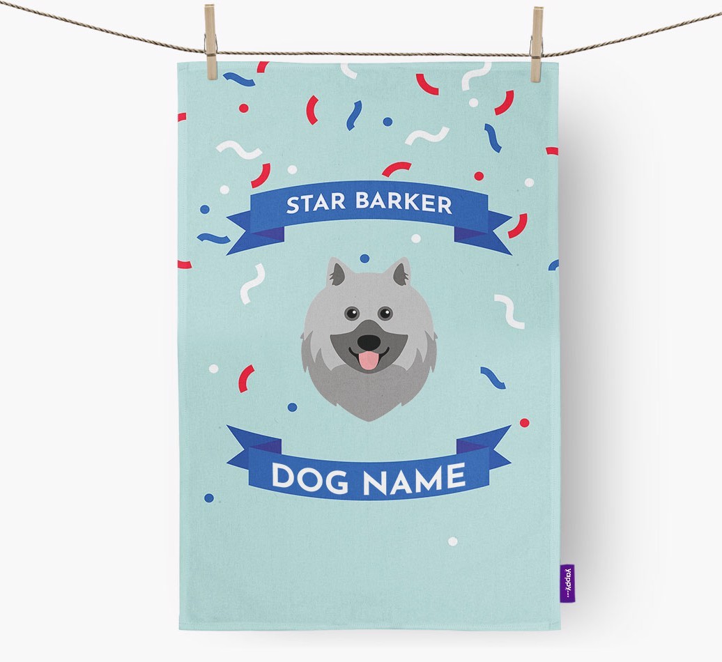 Now you can make sure your Keeshond’s new title is seen by everyone with this pawsome ‘Star Barker’ dish towel, pawsonalized especially for Keeshond.