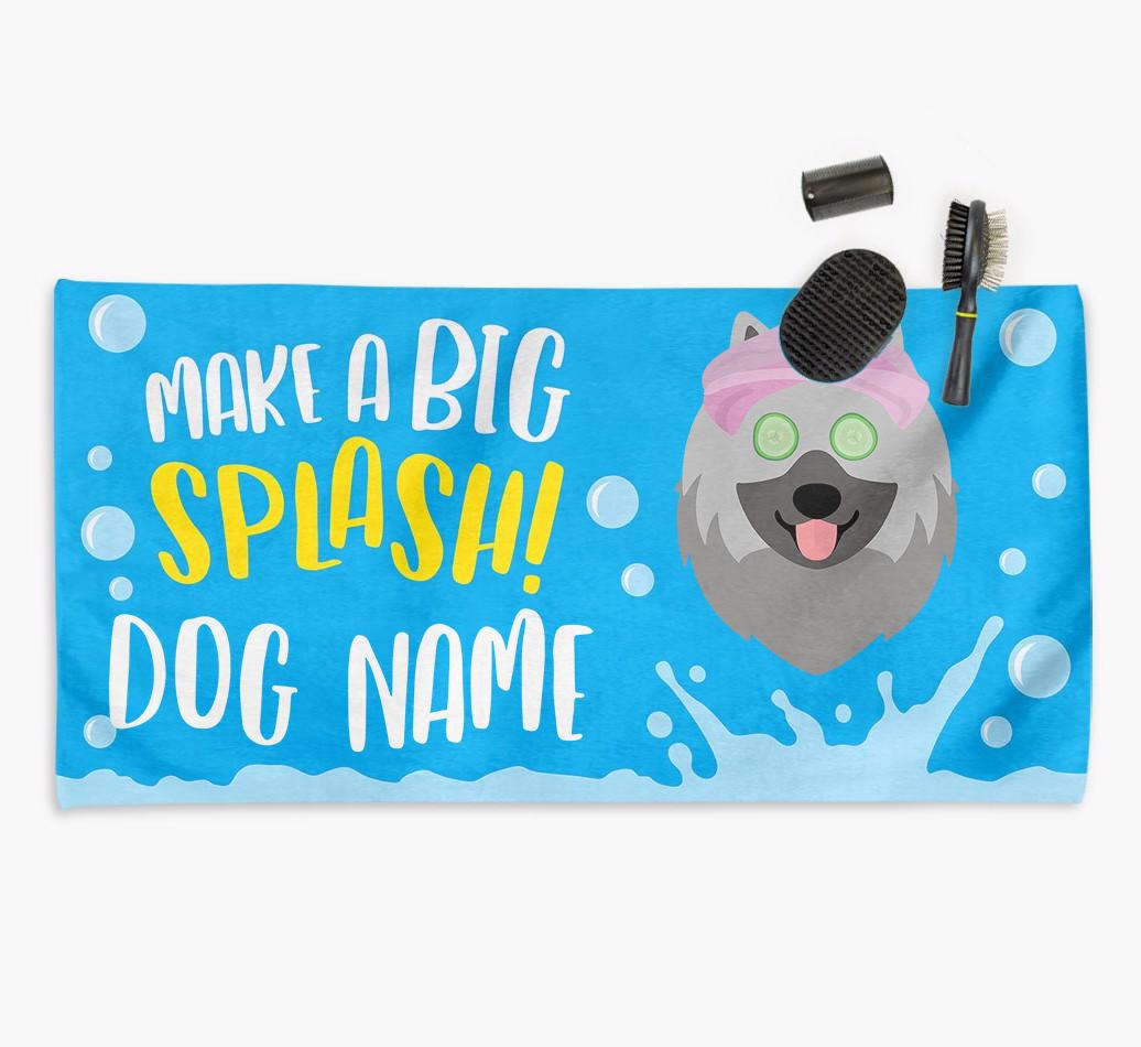 This soft and absorbent towel is perfect for cleaning your mucky pup and drying them off in a flash. It's personalized with Keeshond's name and their spa-inspired icon to make it extra special.