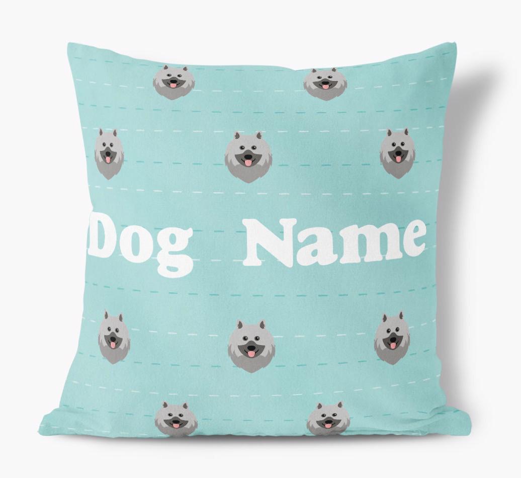 Featuring a furbulous Keeshond icon pattern, this pillow is available in six chic color-ways and is personalized with Your Keeshond's name.